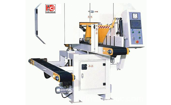 6、特殊設計的多組壓緊裝置,確保木料在鋸切是能被可靠地壓緊,保證厚度公差正負10個絲,使鋸切面不會產生接縫間隙,鋸路損失僅為1.4-1.6mm,相較其它加工方式可節省約20%的材料,使成本大幅度降低。
